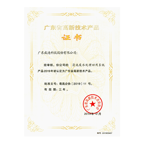 2019年12月高新技術產品-清洗廢水處理回用系統