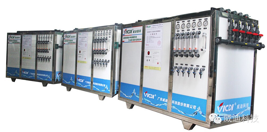 (5) 處理效果好:連續(xù)高頻脈沖電離膜處理法產(chǎn)生的氫氧化物比藥劑法的活性高,凝聚吸附能力強,處理效果好(化學(xué)處理法難以達到);在該系統(tǒng)處理過程中,陽極上產(chǎn)生的氧和氯可使有機物發(fā)生氧化反應(yīng)轉(zhuǎn)化為無害成分,并起到殺菌作用;陰極上發(fā)生的還原作用使氧化型色素還原成為無色物質(zhì);
