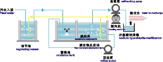 MBR技術是膜分離技術與生物技術有機結合的新型廢水處理技術。它利用膜分離組件將生化反應池中的活性污泥和大分子有機物截留住,省掉二沉池。因此,活性污泥濃度可以大大提高,水力停留時間(HRT)和污泥停留時間(SRT)可以分別控制,而難降解的物質在反應器中不斷反應和降解。因此,膜-生物反應器工藝通過膜的分離技術大大強化了生物反應器的功能。