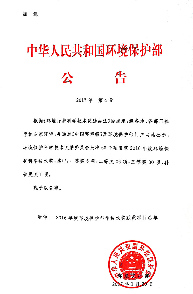 熱烈祝賀廣東威迪科技股份有限公司(股票代碼:870419)榮獲2016年環(huán)境保護科學(xué)技術(shù)獎