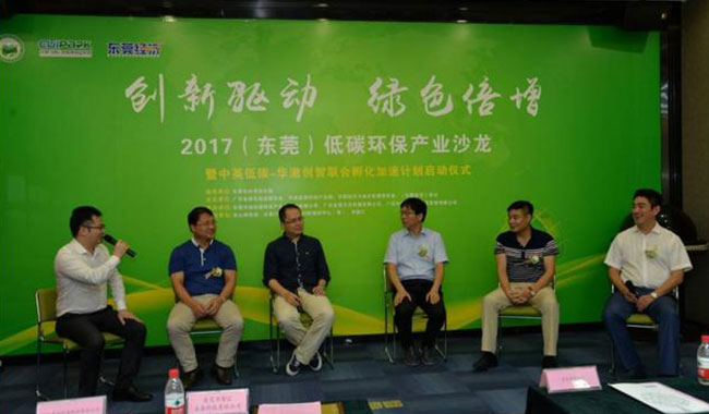7月5日,由東莞市科學技術局指導,廣東省綠色供應鏈協(xié)會、中英(國際)低碳環(huán)保產(chǎn)業(yè)園、東莞經(jīng)濟與城市發(fā)展研究會等單位聯(lián)合發(fā)起的“創(chuàng)新驅(qū)動 綠色倍增——2017(東莞)低碳環(huán)保產(chǎn)業(yè)沙龍暨中英低碳-華澈創(chuàng)智聯(lián)合孵化加速計劃啟動儀式”在松山湖中英(國際)低碳環(huán)保產(chǎn)業(yè)園成功舉辦,來自環(huán)保行業(yè)協(xié)會、綠色環(huán)保企業(yè)、投融資機構、智庫和媒體代表50余人齊聚一堂,共同探討以產(chǎn)業(yè)的資本支持、產(chǎn)業(yè)的實體承載、產(chǎn)業(yè)的協(xié)同互動等措施,推動相關企業(yè)實現(xiàn)倍增發(fā)展。