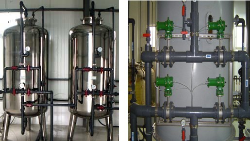 利用石英砂、無煙煤濾料、錳砂等不同介質(zhì)及濾材,配合專用過濾設(shè)備,可將原水中的所有微粒、懸浮物、能見之沉淀物及泥垢過濾。系統(tǒng)配置完善的保護(hù)裝置和監(jiān)測儀表,且具有反沖洗功能,泥垢等污染物很快被沖走,耗水量少,具全自動功能。