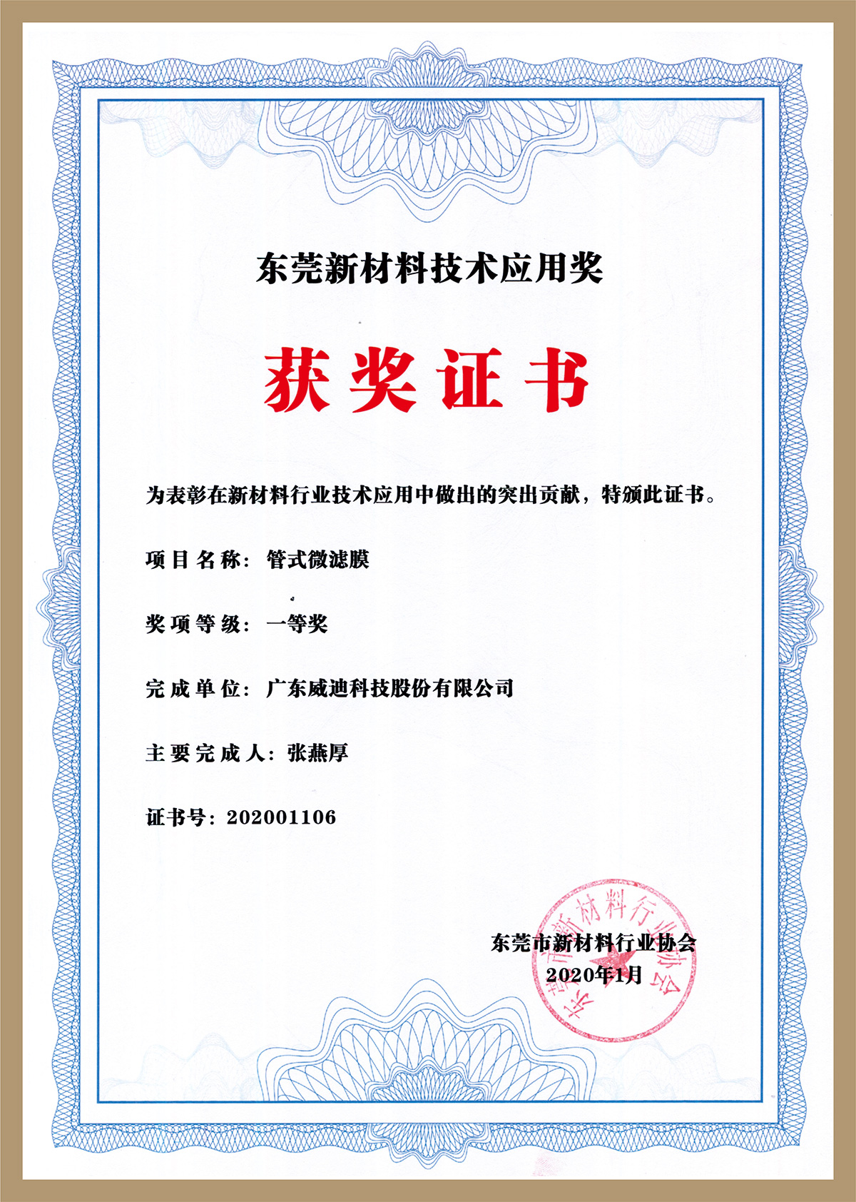 東莞新材料技術應用獎一等獎