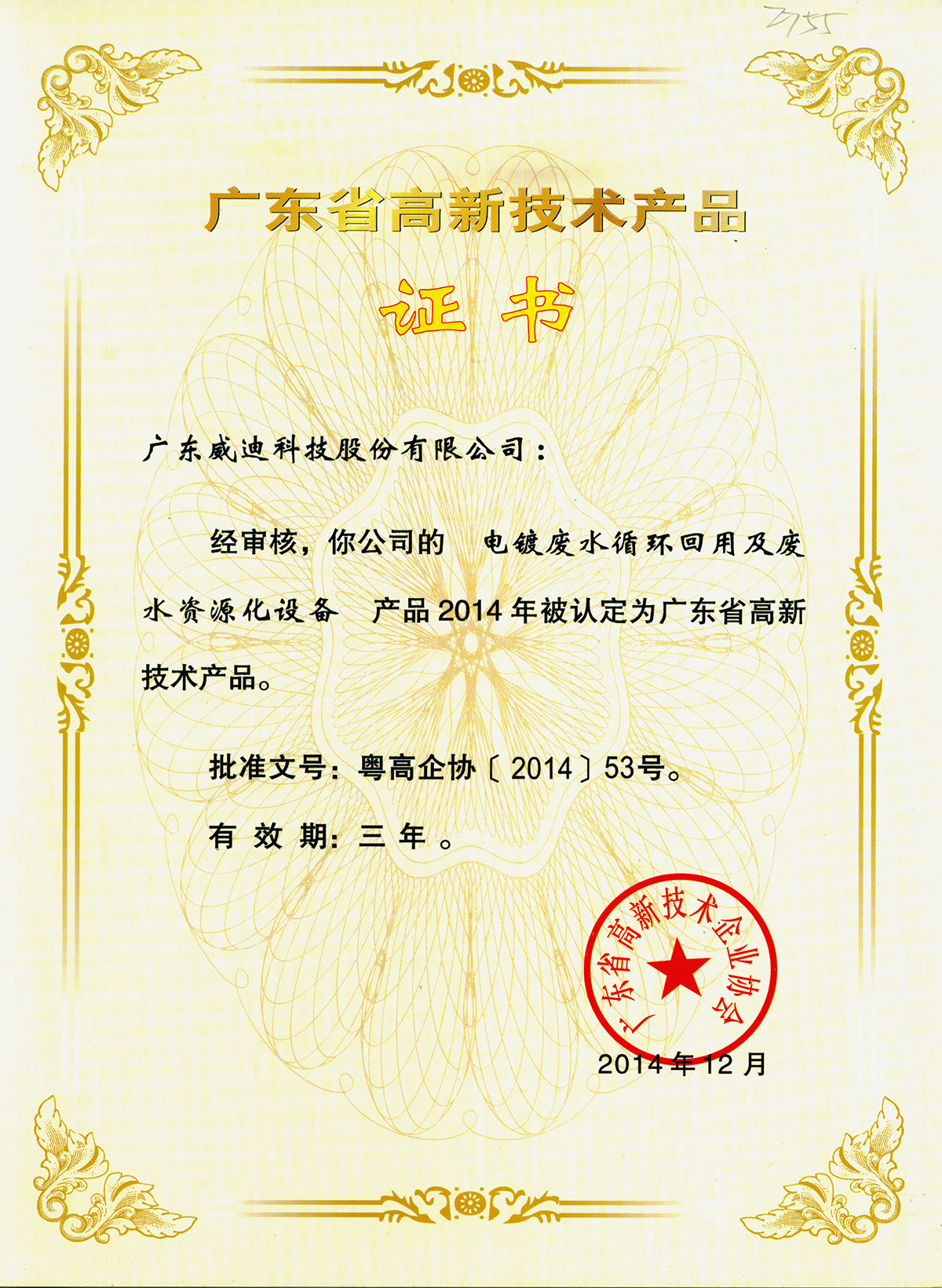 2014年廣東高新技術(shù)產(chǎn)品-電鍍廢水循環(huán)回用及廢水資源化設(shè)備